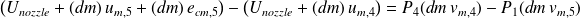 The energy balance in the nozzle is written now, since the macroscopic kinetic energy at output