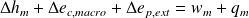 The first law applied to this system (neglecting the macroscopic kinetic energy) is written :