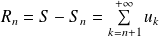 Si la série converge, le reste d'ordre n de la série est :
